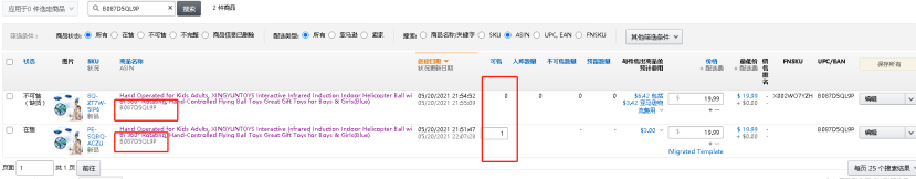 在库存页面搜索老ASIN,系统反应可能会有点慢,一次没刷出来稍微等一会再刷一下
