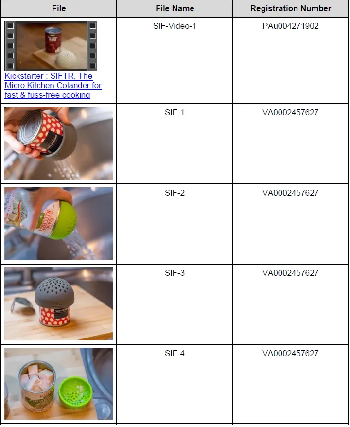原告 BOXED DESIGN LTD. 是 是一家位于英国的企业。SIFTR 微型硅胶滤网是一款食品级硅胶微型滤网,可放入洗碗机清洗,专为过滤罐装食品而设计。SIFTR 微型硅胶滤网用途广泛,包括榨取柑橘类水果汁液、用作草药浸泡器等。