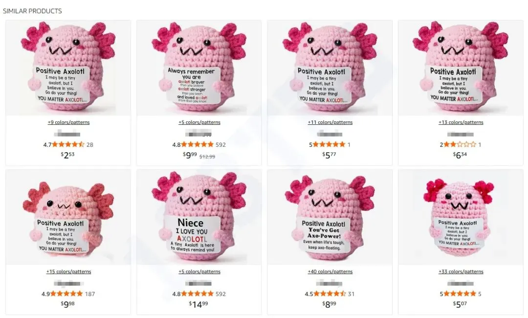 亚马逊还有不少这款蝾螈针织玩偶同款,还有在销售的卖家要及时避险