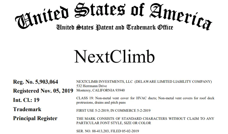 NextClimb商标注册在19类,商标号5903064,已有106家店铺被告,未经授权切勿在listing上使用: