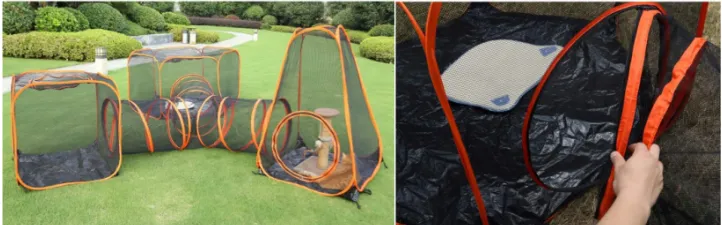 维权产品是多款可折叠宠物隧道帐篷,包含连接隧道和立方体帐篷,可自由组合布局,整体为网状结构透气设计,轻便耐用材料,方便携带和收纳,室内外均可使用。