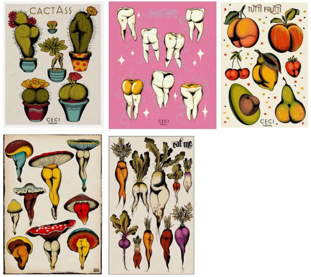 意大利艺术家Cecilia Granata的艺术风格融合了传统纹身设计中的大胆色彩与线条,并巧妙结合绿色植物元素,创造出奇幻色彩的视觉效果。