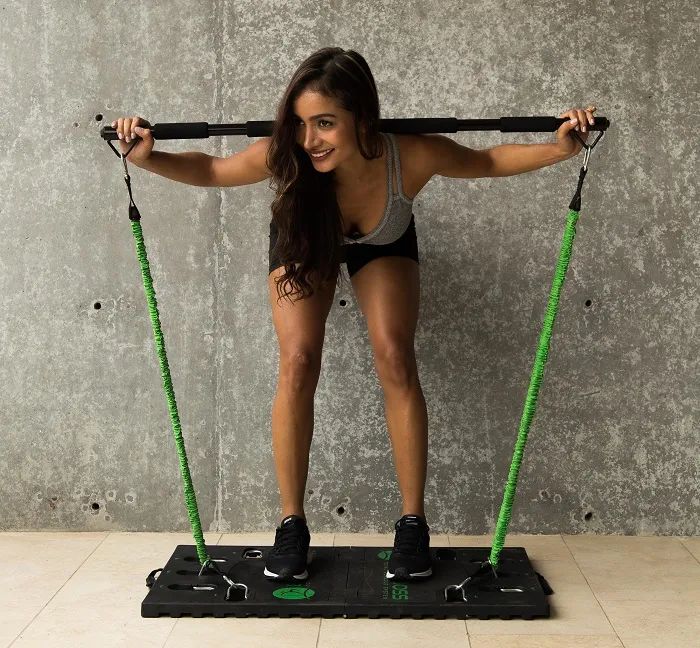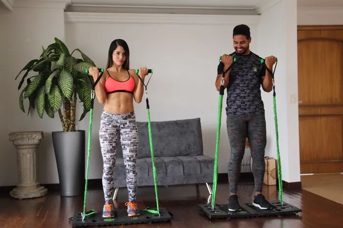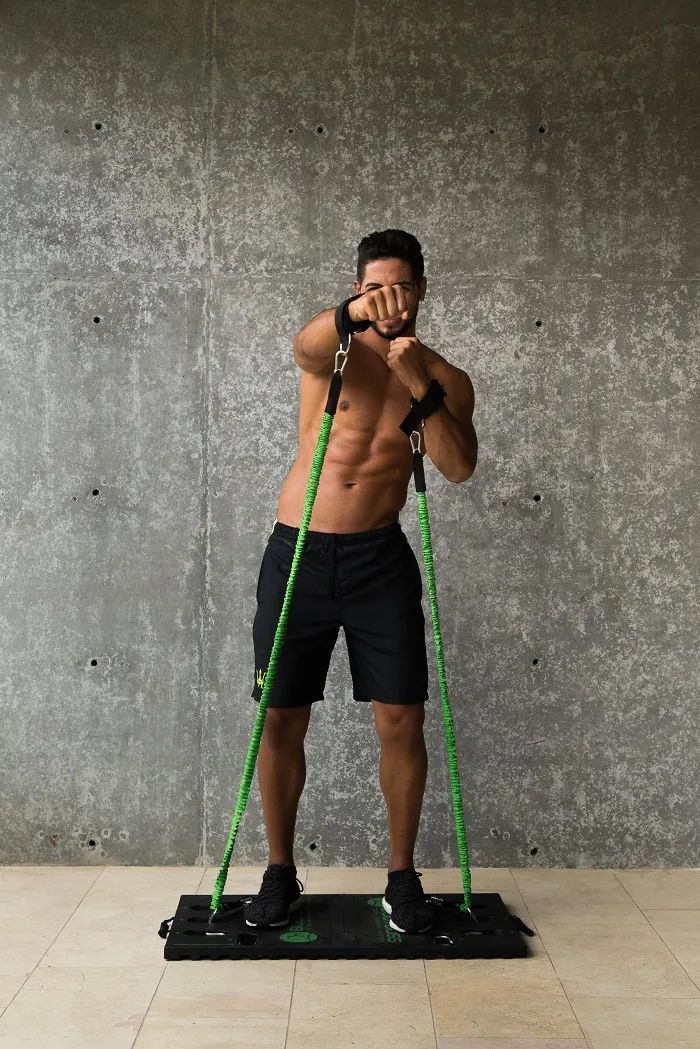 看似是一块平平无奇的运动板,但配合拉力绳之后就能演变出多种健身方式。