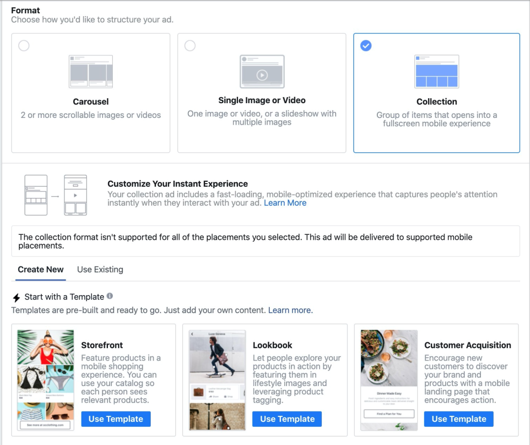 ✔用相同的产品视频在 Facebook 上投系列广告,利用视频照片网格的呈现形式,让消费者探索产品更多的角度和细节;✔在 Instagram Stories 的轮播广告中添加产品视频;✔激励消费者点击广告到 Messenger 界面,开始一对一的对话。即时体验把产品带到生活场景,从而推动消费者更深入地了解产品进行购买。我们可以邀请消费者观看视频、浏览轮播广告、填写表单等等动作中进行结合。正如字面意思,当有人在移动设备上点击广告时,这些“体验”会“立即”开始。