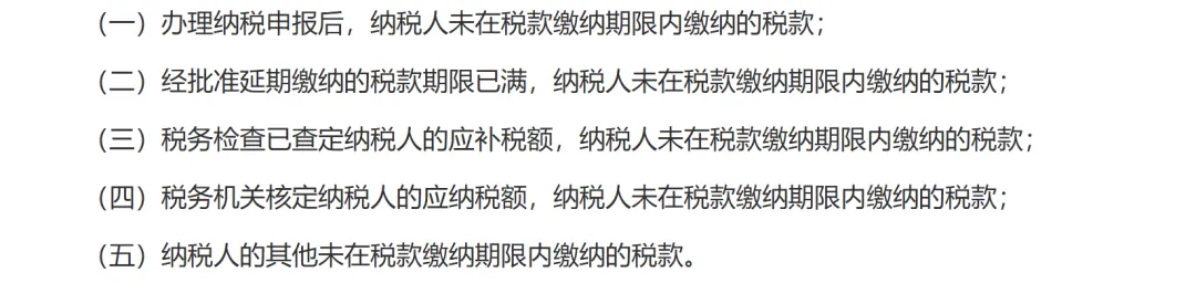 《办法》界定“欠税”为纳税人未按规定期限缴纳税款,涵盖五类情形: