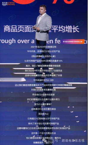 值得关注的是,近年亚马逊对可持续发展的支持愈发明显。2024年年底,亚马逊CPF全球产品总监 Zac明确表示,亚马逊已朝着可持续购物平台的方向发展。平台正在通过流量倾斜和优先展示等方式,重点推广气候友好认证(即“绿标”)产品。绿标认证已成为卖家实现差异化竞争、抢占流量高地的关键突破口。