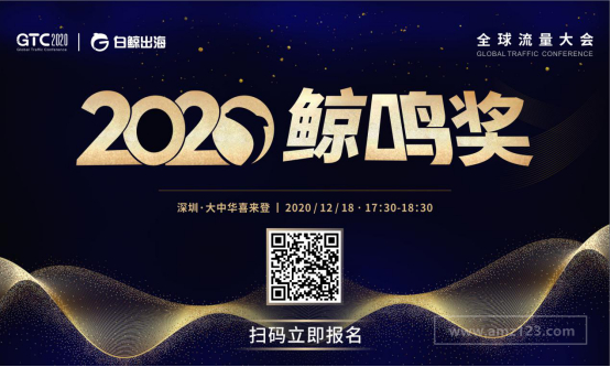 目前,鲸鸣奖申报工作正在如火如荼的进行中,欢迎广大出海优质企业/产品/个人的申报。最终获奖结果将于12月18日在GTC2020全球流量大会·鲸鸣奖颁奖典礼上宣布,届时将有超400位出海精英到场观礼,大家共同见证2020年度出海风向标的诞生!