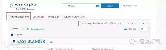 欧盟的商标查询,适用于英国、德国、法国、意大利、西班牙等25个国家。在打开的网站直接输入,我们还是同样以ANKER为例: