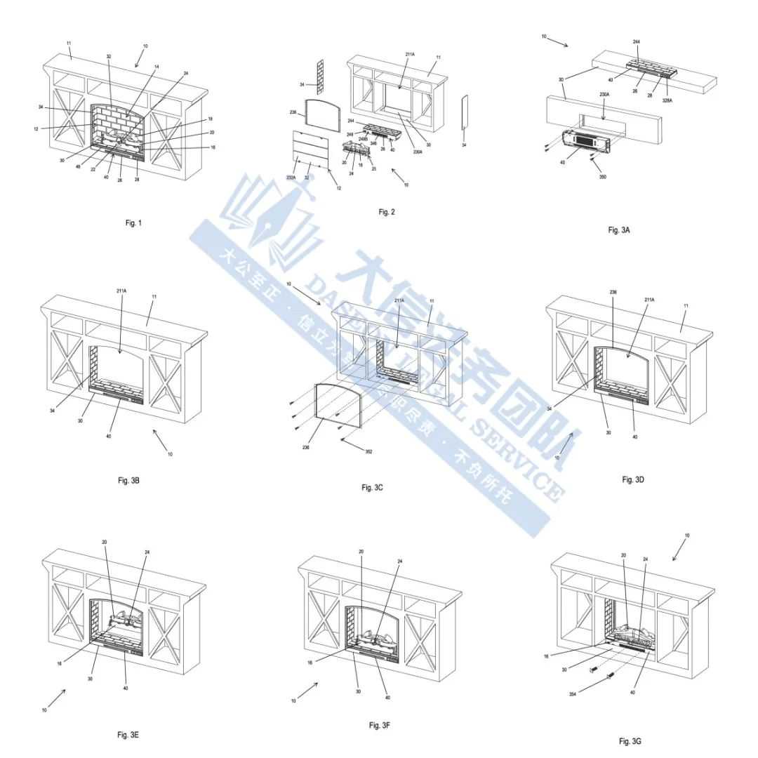 此案为专利维权,专利号:US11619390、US11619391 、US11867409 、US12181158,发明名称为Modular assembly for electric fireplace电子壁炉模块化组装件,以下是涉及专利的具体信息,未经授权不得擅自使用,侵权风险极高!跨境卖家尽快检索下架,否则会有TRO侵权风险!
