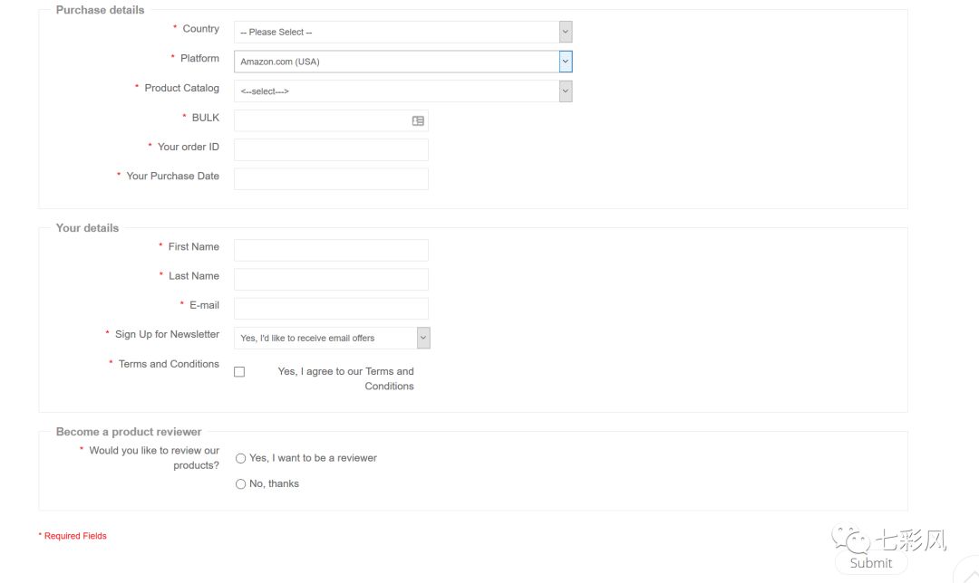 看看这个品牌官网所需要客户登记的售后信息。大家对售后服务,二次营销,以及现在的review是否都有脑洞大开的感觉?