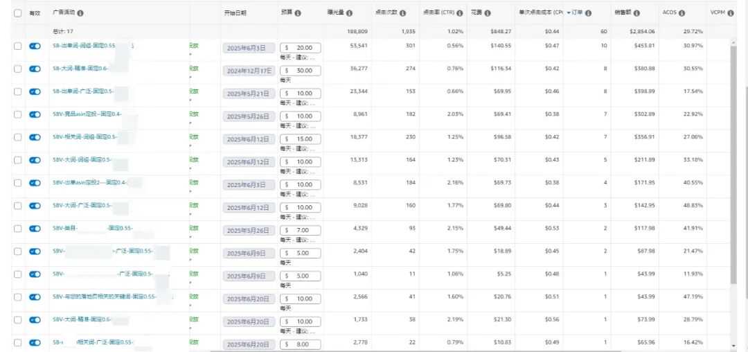 通过这种按变体分层投放的精细化策略,SP广告的转化率逐步恢复,并开始承接稳定流量。