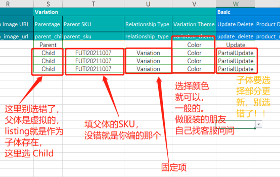 子体是需要选择部分更新 " PartialUpdate ",这个很重要。因为选择这个,才可以保留好你的原Listing信息。