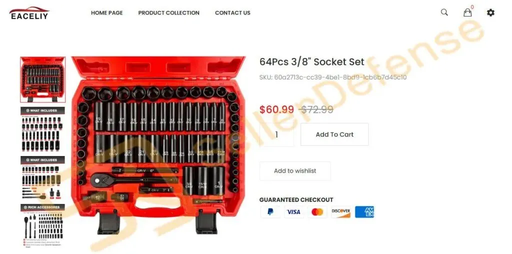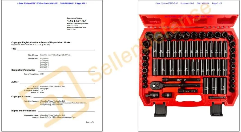 本案为国人原告,是一家主营跨境电商业务的贸易公司。本案维权 EACELIY 套筒扳手套装是一套常用于汽车维修拧紧或松开螺栓、螺母的维修工具。以下产品版权图未经允许不得使用!