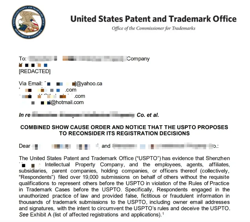 此次涉事服务商 shenzhen hxxxx 在 2009-2020 年期间,通过伪造申请人签名、冒用美国律师资质、共享 USPTO 账户等违规手段,累计提交超 1.9 万份商标文件,涉及 15932 个商标申请及注册记录。