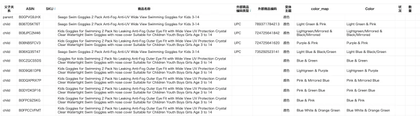 可以展示该链接下的所有子体。导出信息后,打开表格,就能看到完整的子体ASIN列表。也支持批量查询很多链接,批量下载子体ASIN。