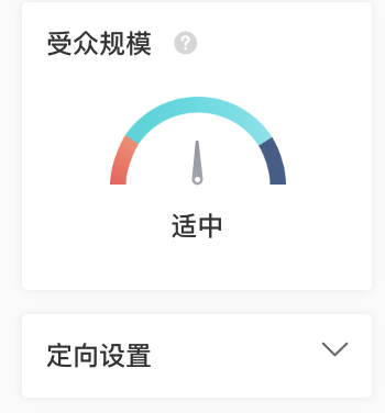 不披露具体数字,分为过窄/较窄/适中/较广/过广五个档次,并通过转盘指针提示预估受众的覆盖范围。