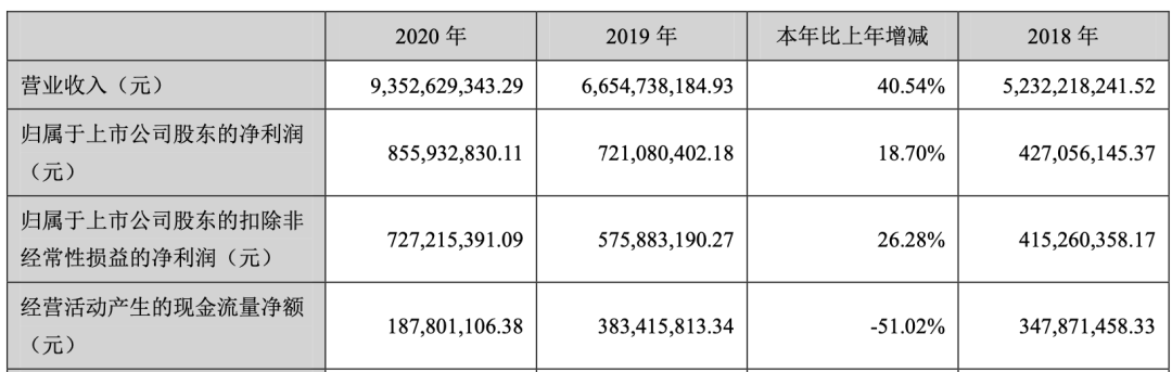 2020年,安克创新实现营业总收入93.53亿元,与上年同期相比增长40.54%;实现归属于上市公司股东净利润为8.56亿元, 同比增长18.70%;实现扣除非经常性损益后的归属于上市公司股东净利润为7.27亿元,同比增长26.28%。即将踏入百亿营收的规模,安克创新展现出稳定的盈利能力。