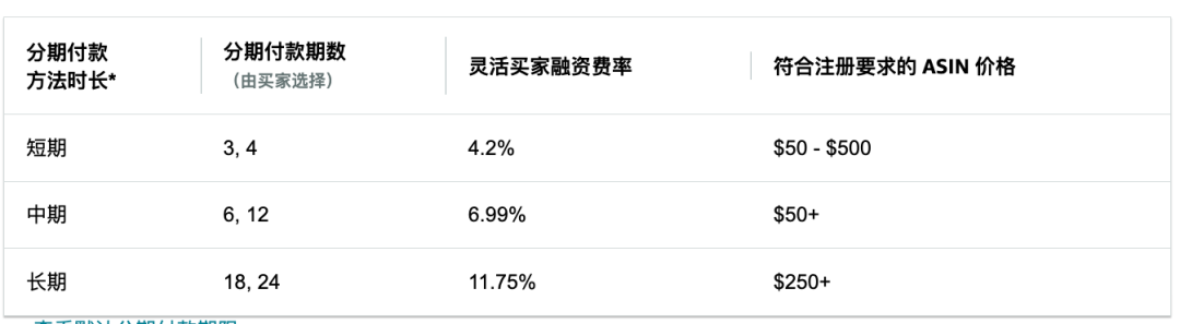 灵活买家融资计划(Flexible Customer Financing Program,简称 分期支付计划)是亚马逊为卖家提供的一种支付解决方案,允许符合条件的商品支持 0% 年利率的分期付款,分期时长可从 3 期到 24 期不等。