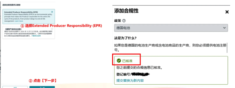 首先,卖家需要确保已上传成功对应站点的EPR号码,且该号码处于【已核准】状态。