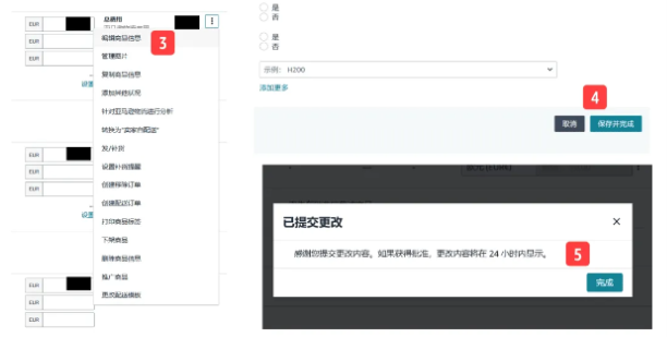 Step2 找到该ASIN后,点击【编辑商品信息】,不用进行任何字段的更改,直接点击【保存并完成】,在新窗口中点击【完成】。