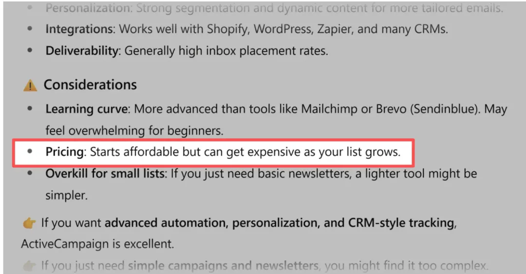 比如:我们问ChatGPT best email marketing tools brand,它会把品牌名字列出来。