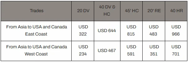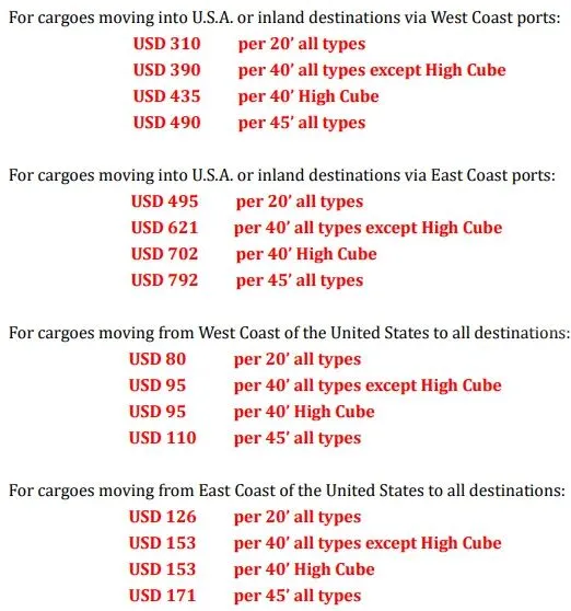 地中海航运(MSC)更新美线紧急附加费