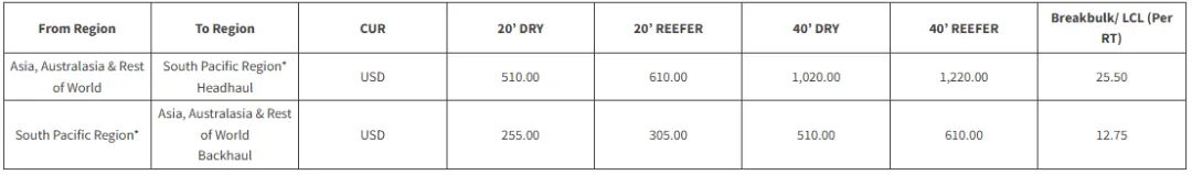 更新亚洲至南太平洋紧急附加费