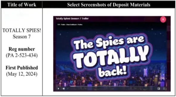 涉案版权号PA 2-523-434,Totally Spies! 视频及图片都不建议使用: