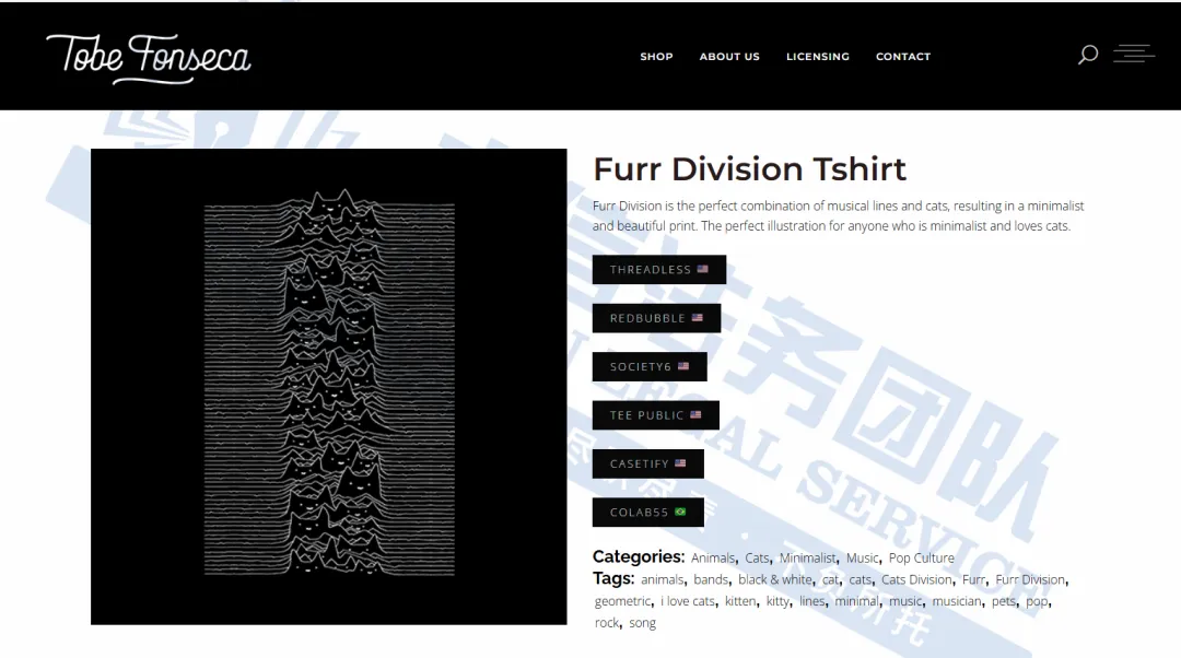 原告是一位巴西插画家与创作者,他擅长用简洁的方式呈现自己喜欢的元素,同时也会尝试创作更复杂的图案,将拼贴与插图融合在一起。他的创作风格将幽默与自然元素相结合,独特且富有创意,他是 Tobias Fonseca 设计工作室的创始人,其作品被广泛应用于 T 恤、贴纸、墙画等多种商品上。