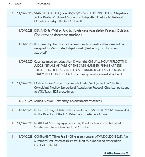 原告是英格兰桑德兰市的一家职业足球俱乐部,成立于1879年,目前已成为英格兰历史最悠久的足球俱乐部之一。它曾在早期英格兰足球中创造辉煌,是第一个夺得三次顶级联赛冠军的球队,历史上共获得过6次顶级联赛冠军和2次足总杯冠军。2024-25赛季,Sunderland通过英冠附加赛重返英超,时隔8年重返顶级联赛。