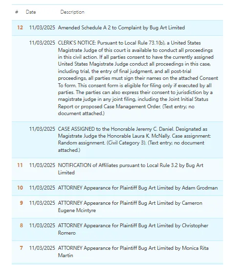 原告是由Jane Crowther创立,专注于生产高质量的贺卡,因每一款Bug Art设计都在图像中隐藏着一只小虫子,以此作为Crowther最初创作的贺卡系列的参考。尤其是在昆虫和自然主题的艺术作品中展现了独特的魅力。除了贺卡,公司还推出了一系列的礼品和文具产品,如文具套装、笔记本等,适合各类场合的送礼需求,Bug Art已成为国际公认的优质艺术贺卡出版商,其产品遍布全球多个国家和地区。