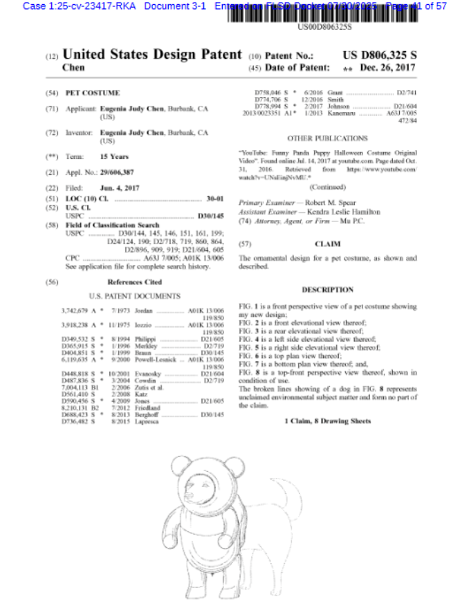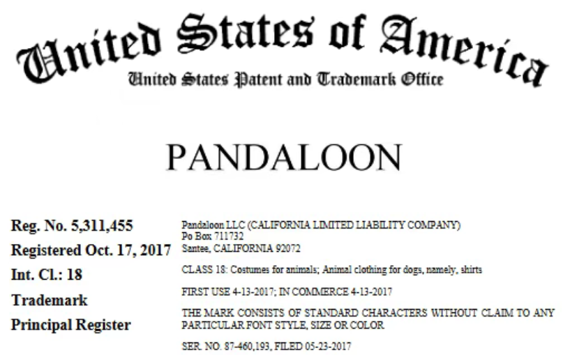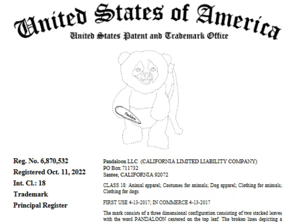原告PANDALOON LLC 是一家位于美国加利福尼亚州的小型企业,主要经营宠物服装,以熊猫主题设计为主,也销售人类服装、配饰,如 T 恤、拖鞋、帽子和袜子等。