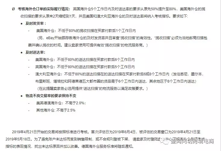 距离4月23日海外仓考核报告这个炸弹还未投放,今天ebay又进行了对3月份海外仓新规做升级调整(3月份那个连续3次划来划去解释英国尾程物流方式我们可以忽略),先看内容,我们再对重要的进行分析!