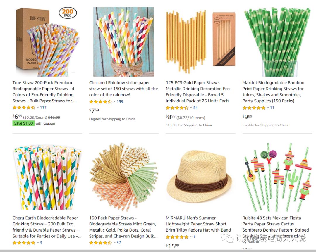 在Drinking Straw这个搜索结果之下我们可以看到各种各样销量很高的吸管,