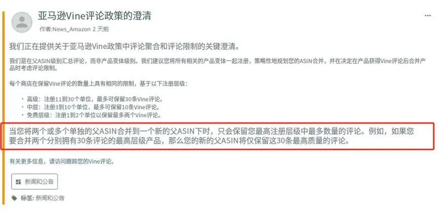 根据最新政策,评论按父ASIN维度汇总,并设有明确上限(免费级最多2条,高级最多30条),超出部分被批量清除。