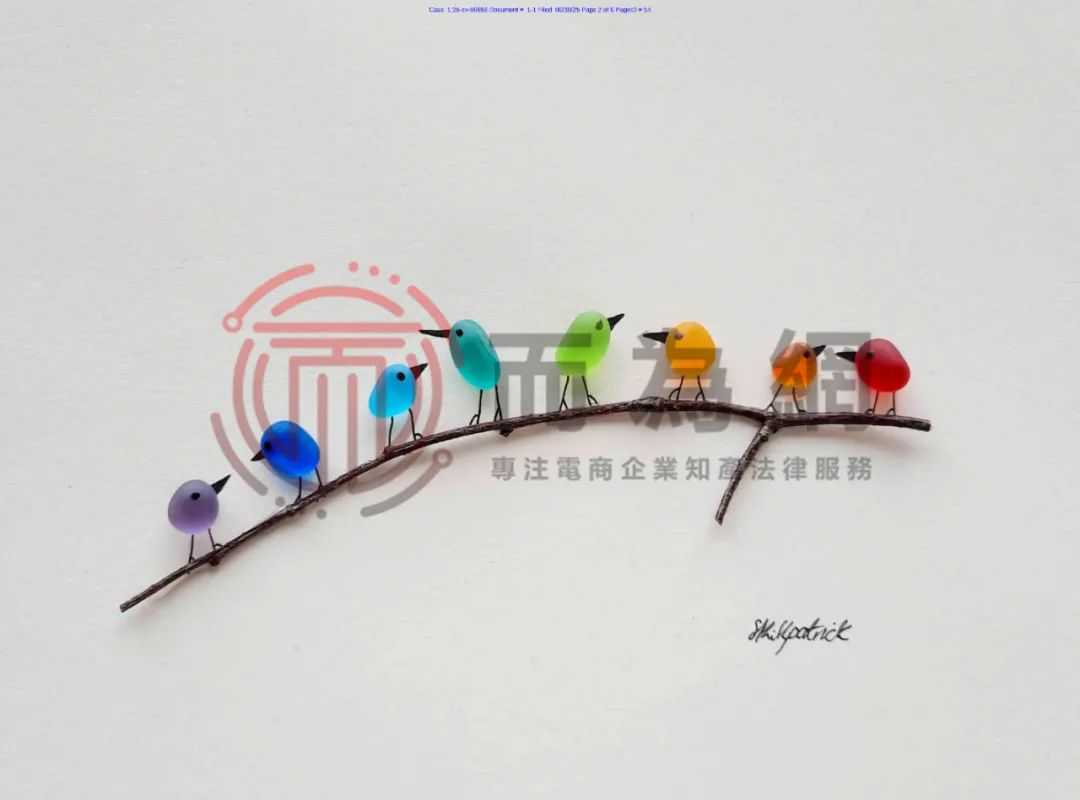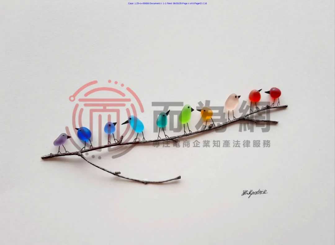 【侵权快讯】25-cv-6656 David律所杀疯了!这几张海玻璃彩虹鸟版权不能卖了,正在维权!