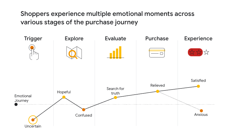 品牌可以通过做三件事让人们更接近购买决定。人们求助于 Google 搜索,因为它可以帮助他们找到清晰的信息。它对信息进行组织和语境化,将购物者与各种资源联系起来,提供解决他们情绪紧张的答案,并让他们感到安心。