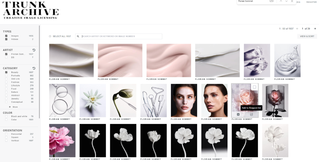 Trunk Archive 是全球知名的全服务摄影授权机构,旗下签约了数百位顶尖摄影师,拥有海量标志性摄影作品的授权权益,客户涵盖时尚杂志(如 ELLE、VOGUE、Harper’s Bazaar)和国际美妆品牌(如香奈儿、欧莱雅、娇韵诗)。
