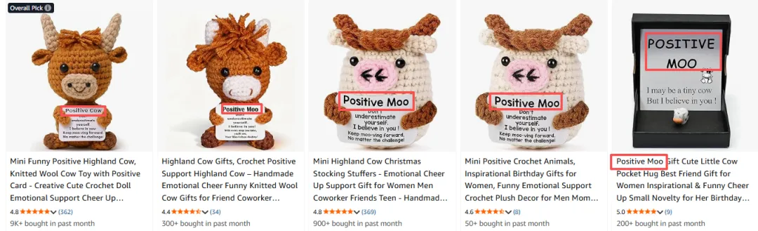 在亚马逊上搜索发现有不少针织玩偶用到该词汇,listing、标题、产品图等均有,侵权风险极大,建议做好自查。