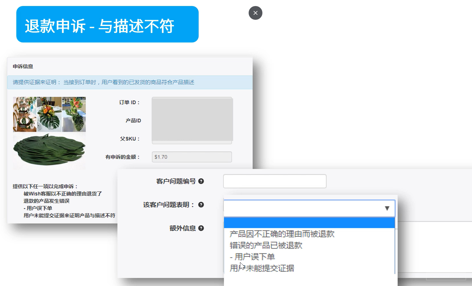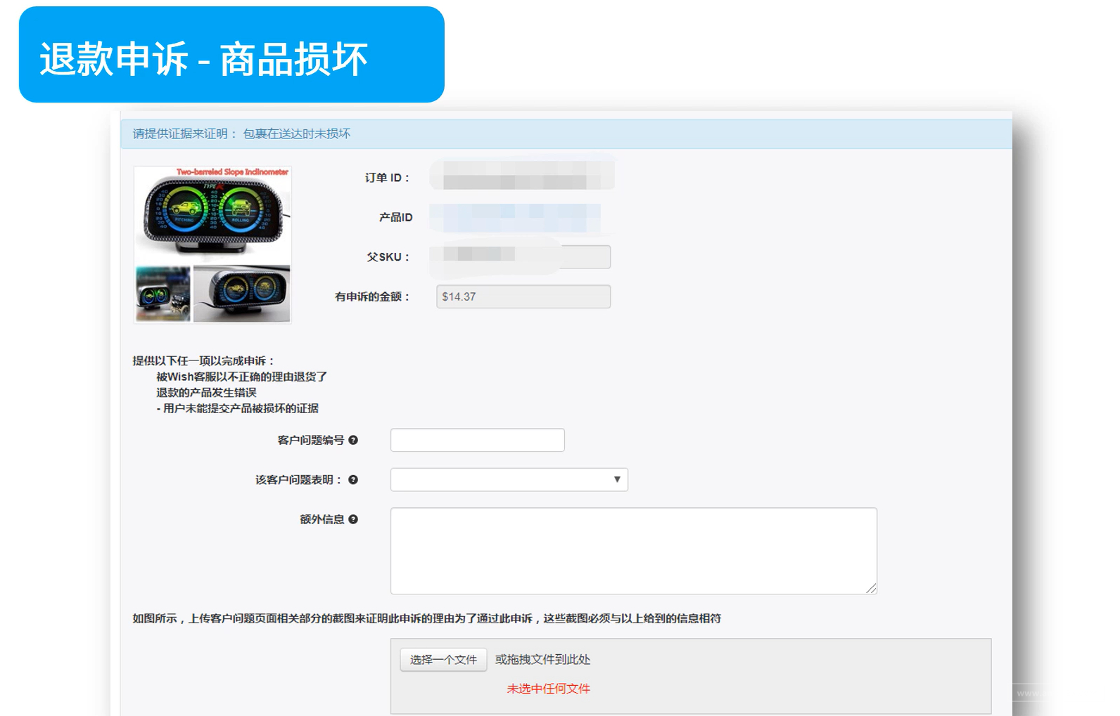 3、上传客户问题页面相关部分的截图,以通过此申诉。