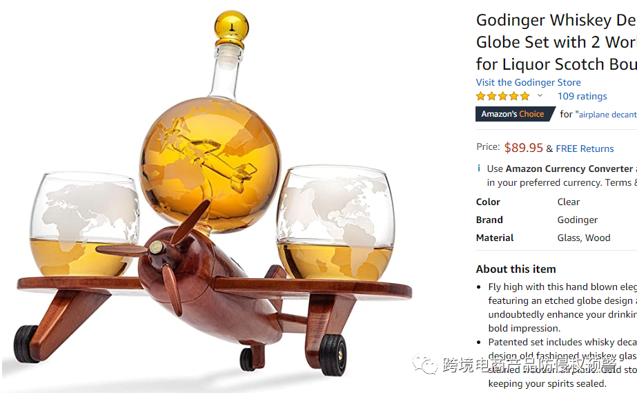 先看看它的销售页面截图,目前是亚马逊美国站的Amazon's Choice,评论数109,售价89.95美元(个人感觉售卖蛮高的.......):
