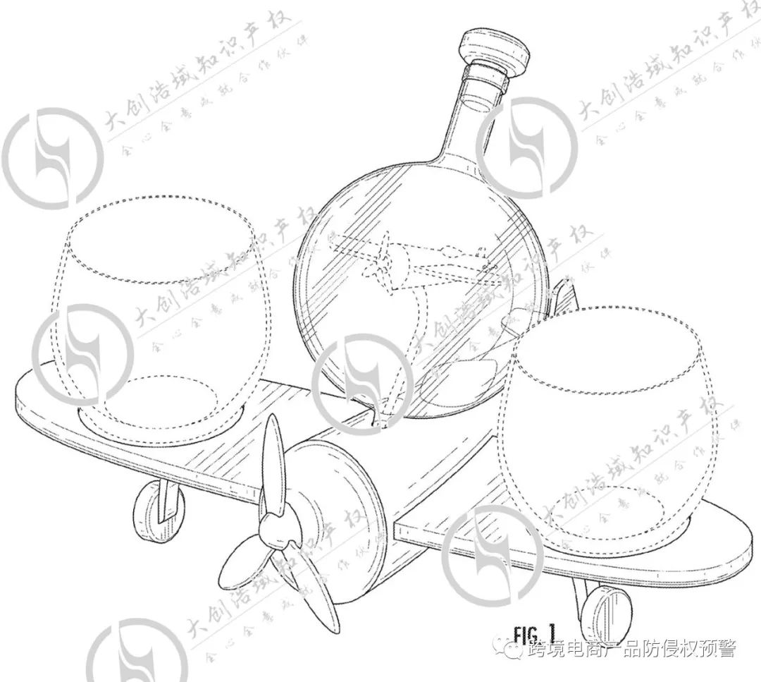 需要注意的是,该专利的虚线部分不是这个专利的保护范围,意思就是你可以使用相同的杯子,小飞机,但是就是不能使用这个飞机模型,意思整个实线都在保护范围内!