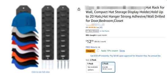 【25-cv-5980】国人起诉!Baseball cap hat racks棒球帽架美国发明专利TRO维权,未开始冻结账户资金