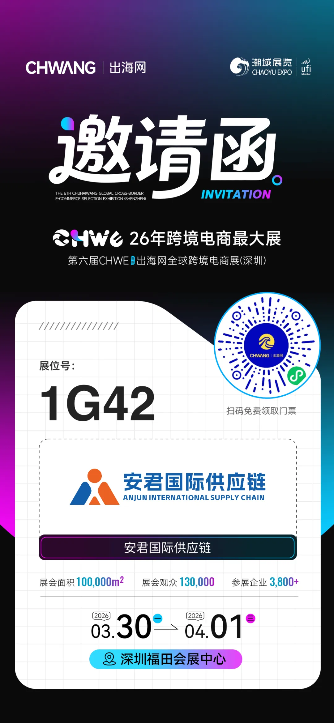 春日赴约,共拓蓝海!安君国际供应链受邀参展第六届 CHWE 出海网全球跨境电商展,诚邀各位跨境电商、出口贸易伙伴莅临交流,共话物流新机遇!