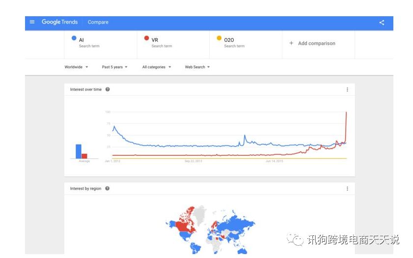 可以分析到每个国家地区,甚至到每个州的搜索趋势,