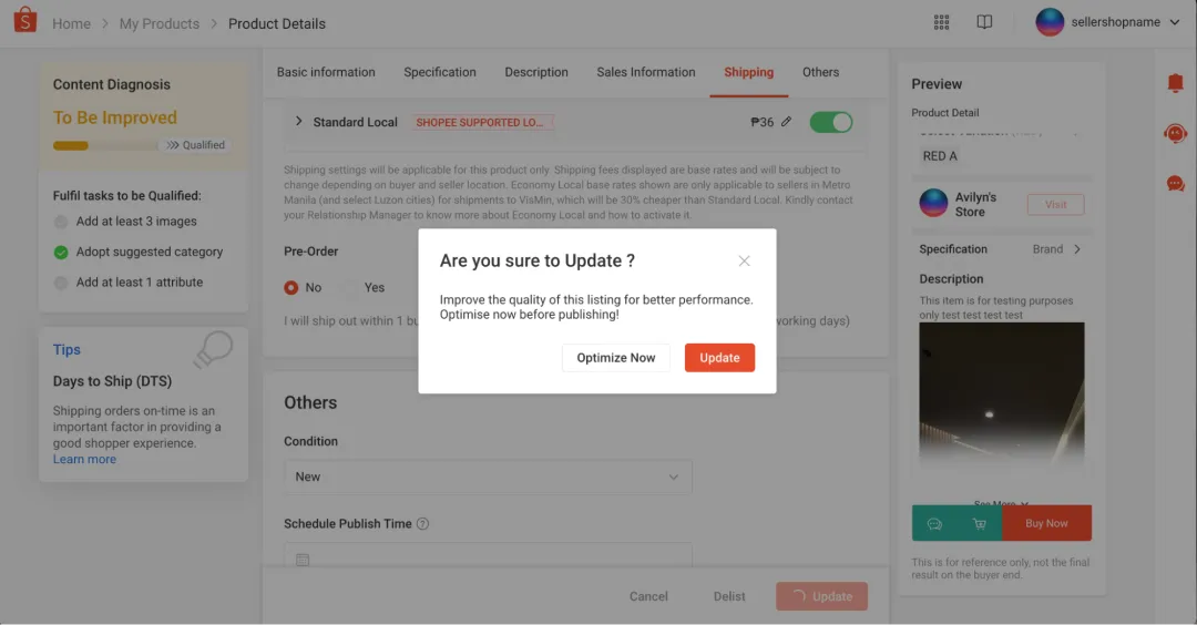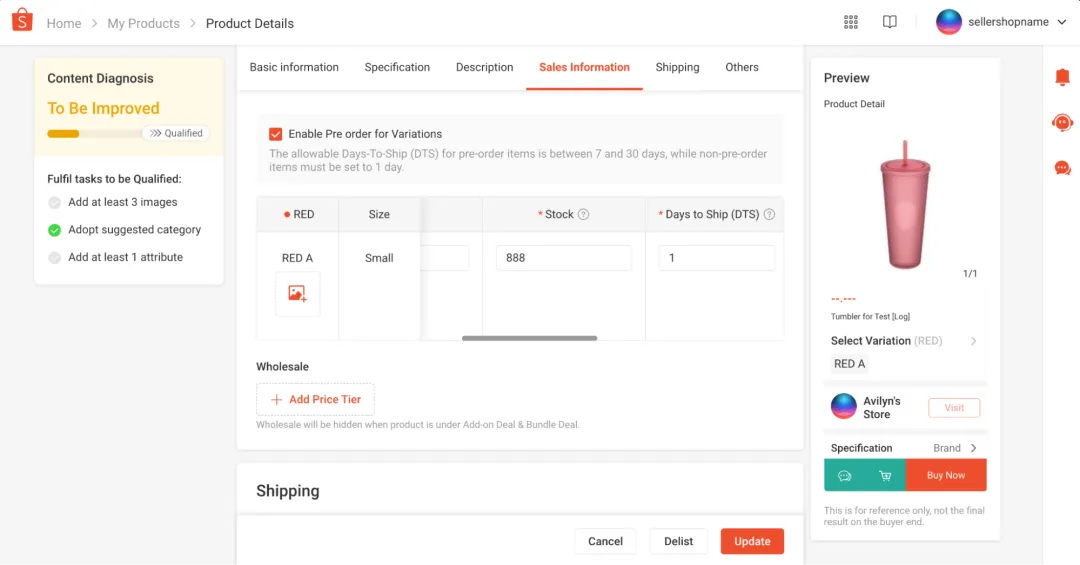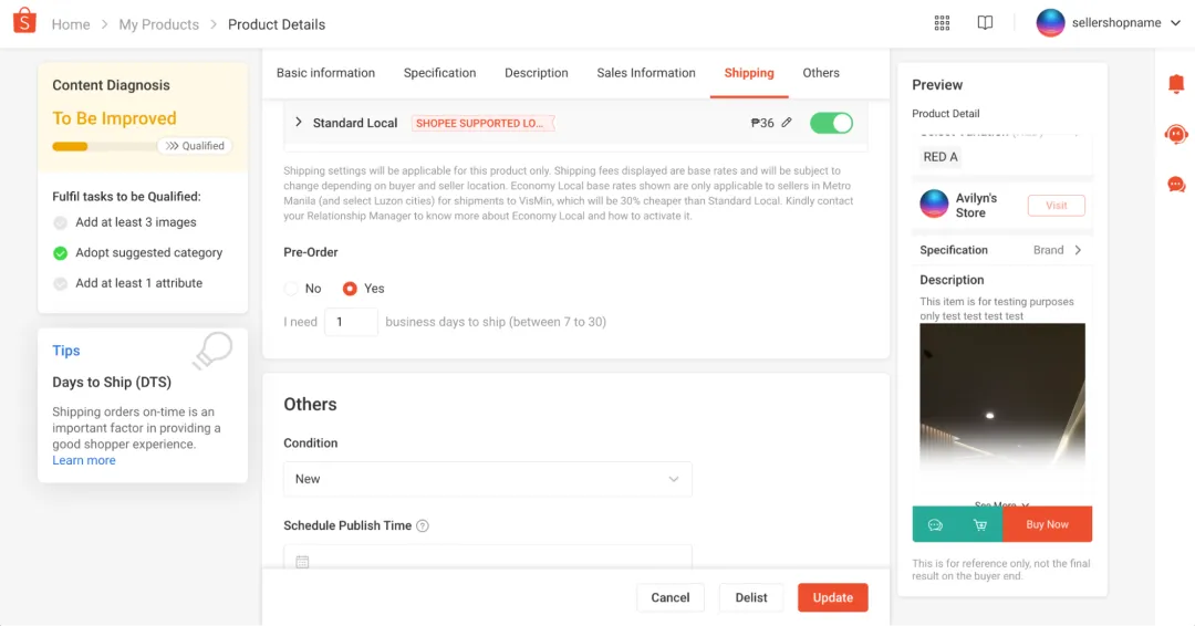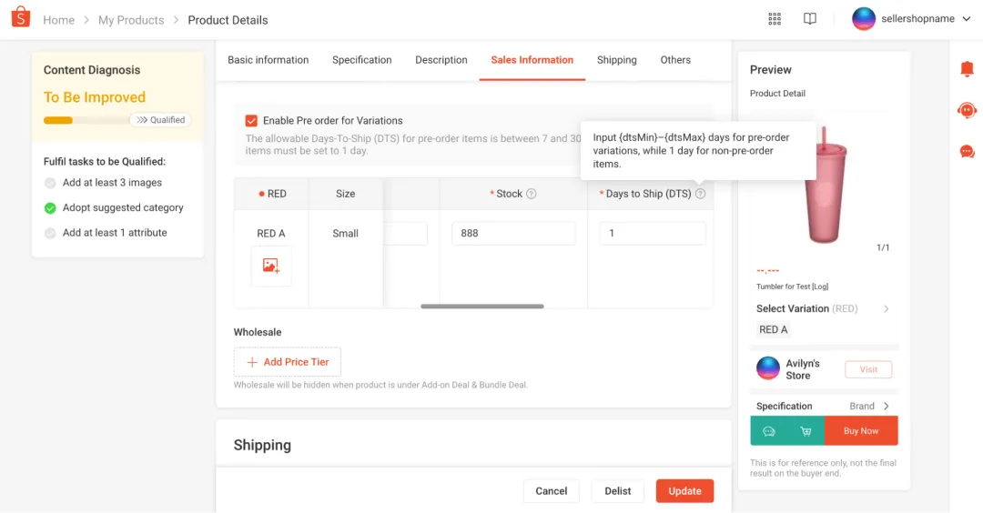如果您当前的预购列表中的商品在Shopee的标准发货天数指导下已准备好发货,您可以选择将它们从预购列表中移除。这将有助于吸引更多买家查看您的产品,因为他们可能会期待更早的交货。