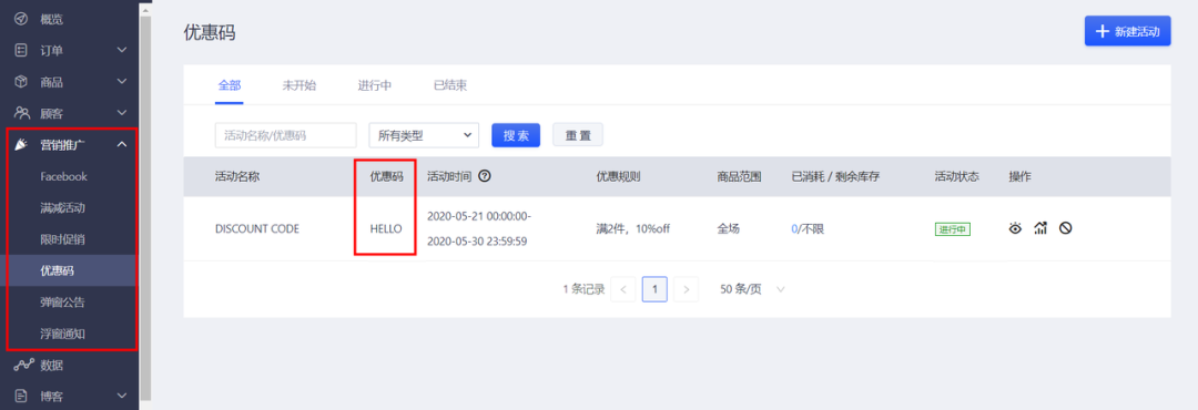 在推广前,你可以像小匠这样设置红人专属优惠码,方便后期准确测算展现-点击-访问-下单各环节的转化。