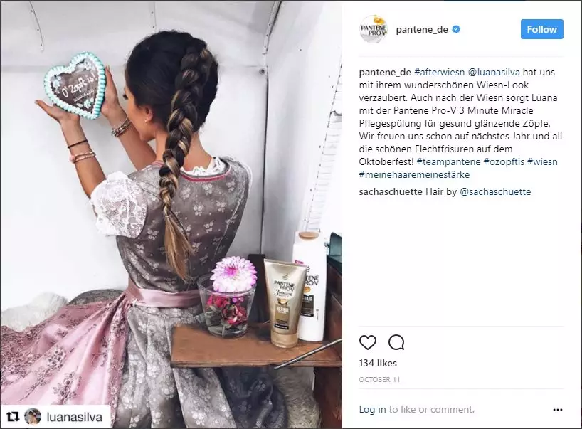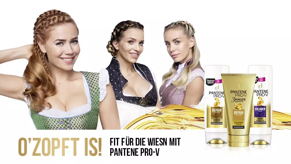 啤酒节的特色之一就是人们会身着德国传统民族服饰游行和玩乐,而传统造型里女生往往会盘起长发~ 潘婷就此入手举行一场营销宣传~