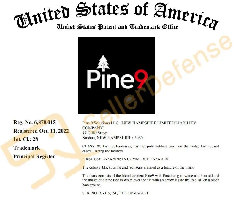 原告 PINE 9 SOLUTIONS LLC 是一家美国家族式私人有限责任公司,是 Pine 9 品牌产品的制造商和销售商。Pine 9 产品包括标准款和手工款的高品质耐用鱼竿套,旨在让垂钓者能够舒适安全地携带鱼竿。