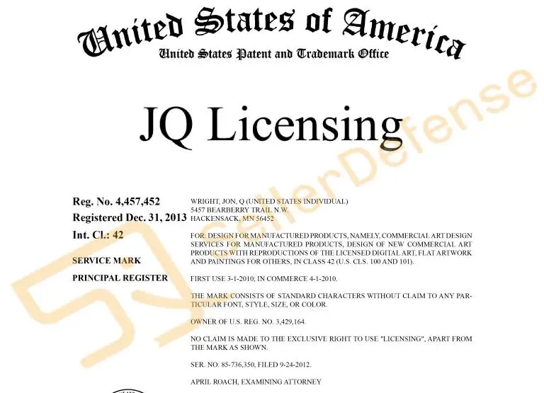 品牌方:JON Q. WRIGHT,JQ LICENSING, LLC